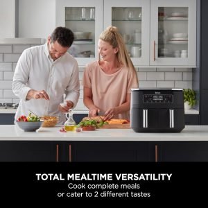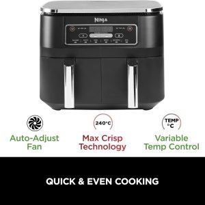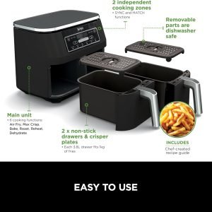 Ninja Foodi Dual Zone Digital Air Fryer, 2 Drawers, 7.6L, 6-in-1, Uses No Oil, Air Fry, Max Crisp, Roast, Bake, Reheat, Dehydrate, Cooks 4-6 Portions, Non-Stick, Dishwasher Safe Baskets, Black AF300ME – Supermercados Disco del Uruguay